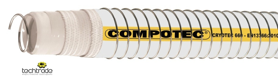 Композитен многопластов маркуч за втечен природен газ (LPG), производител MATEC, модел CRYOTEC 660, специално създаден за трансфер на втечнени и криогенни газове под налягане и ниска температура. Има отлични изолационни свойства. За разлика от каучуковите